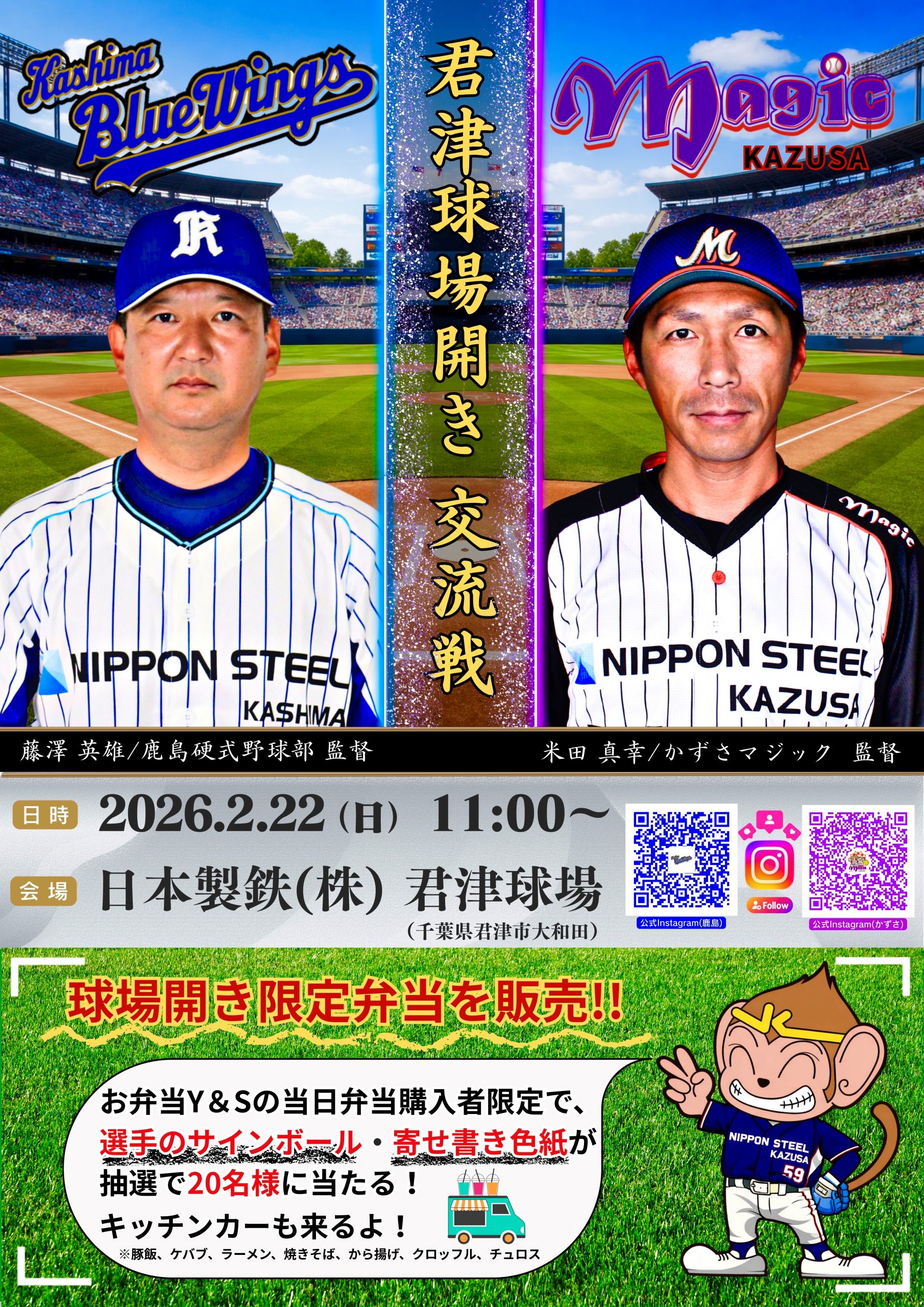 2月22日(土)11:00~君津球場(千葉県君津市)にてかずさマジックと対戦します。